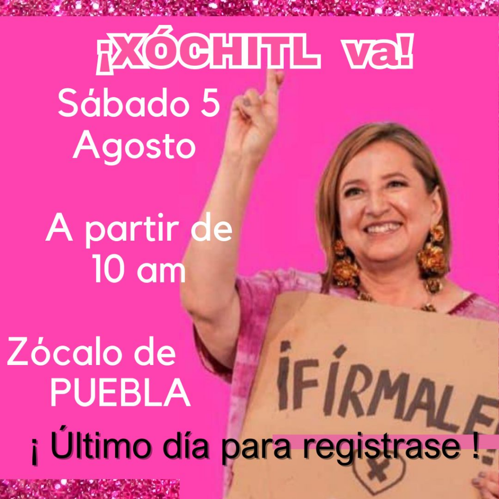 En el marco del último día para el registro de candidatos, una impresionante activación ciudadana tendrá lugar el día 5 de agosto en el Zócalo de la ciudad de Puebla en apoyo a Xóchitl Gálvez, quien busca encabezar el Frente Amplio por México, así que fírmale a Xóchitl